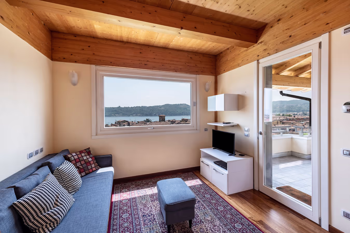 L’appartamento Rocchetta è un nuovo e moderno bilocale circondato da un ampio balcone soleggiato con splendida vista lago.